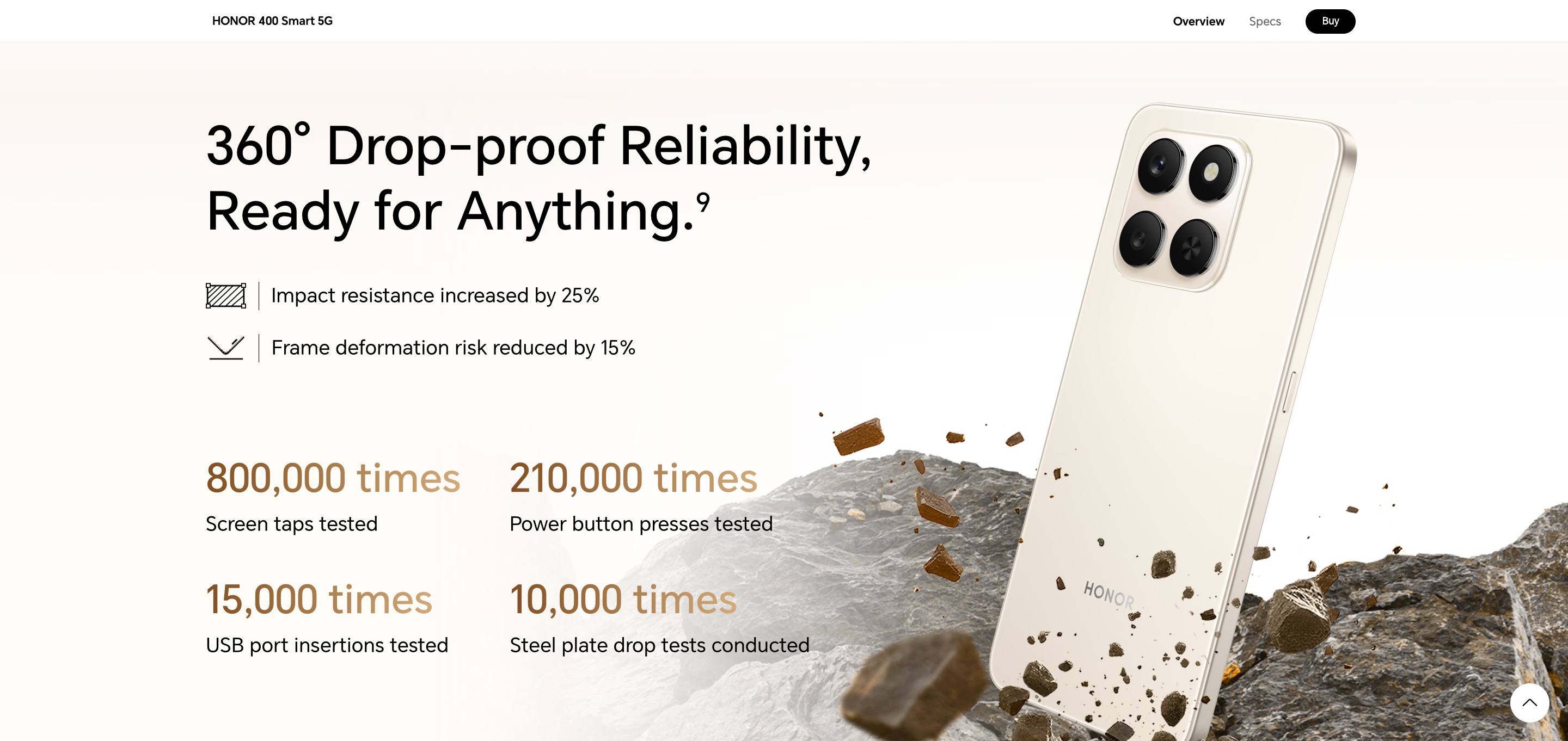 The HONOR 400 Smart 5G boasts IP65 water/dust resistance and has earned an SGS Premium Drop-Resistance certification, offering enhanced resilience for everyday use in Singapore’s humid climate. Plus, the dedicated Instant AI Button gives you one-tap access to smart commands and favourite apps for smoother workflows.