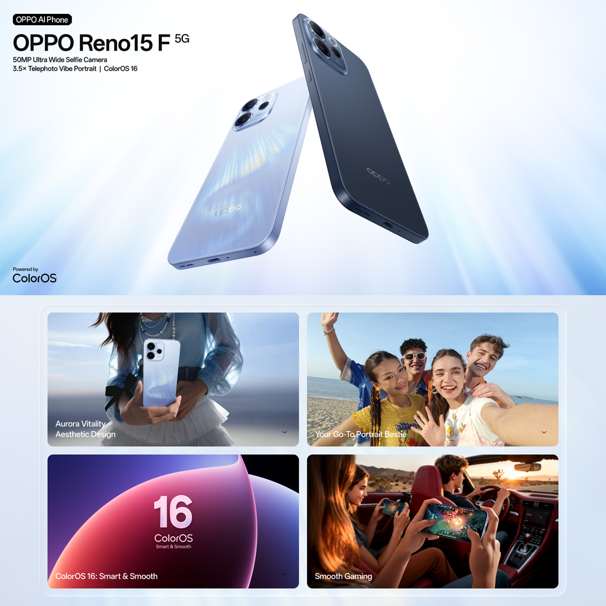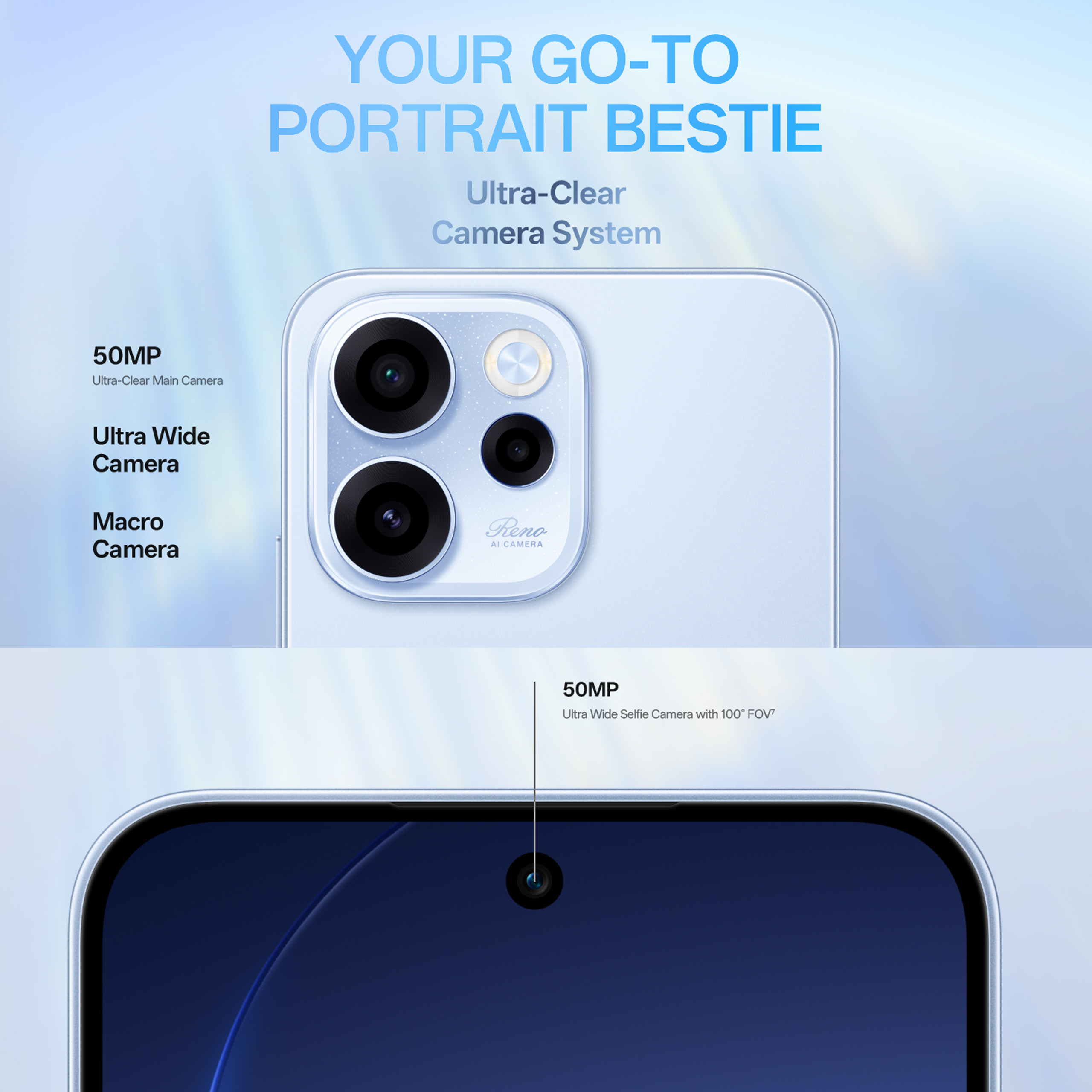 One of the highlights of the Reno 15f is its 50MP ultra-wide selfie camera, designed to deliver sharper and wider selfies for group shots and social media content creation.