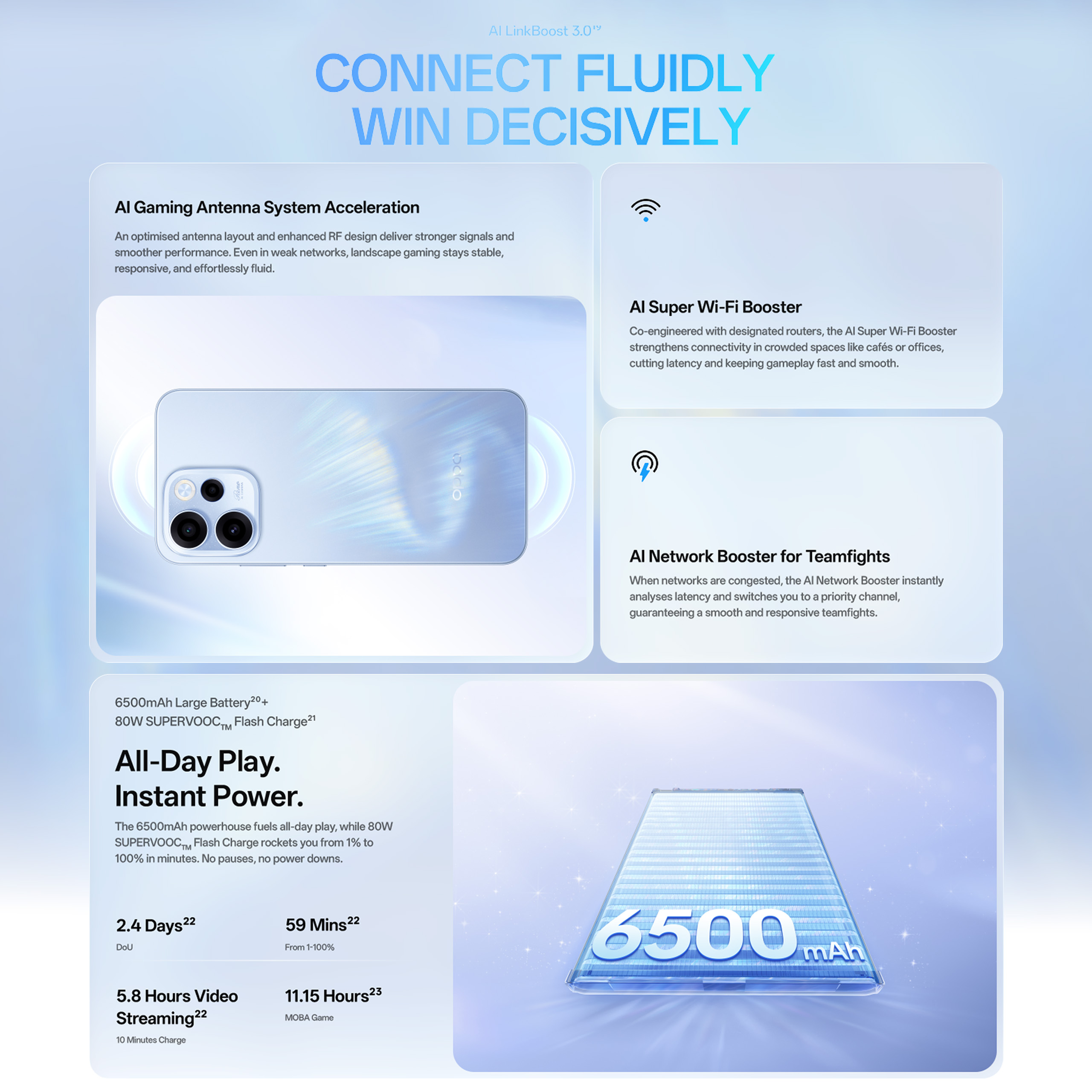 It also supports 80W SUPERVOOC fast charging, allowing the phone to recharge quickly so users can get back to their activities without long waiting times.